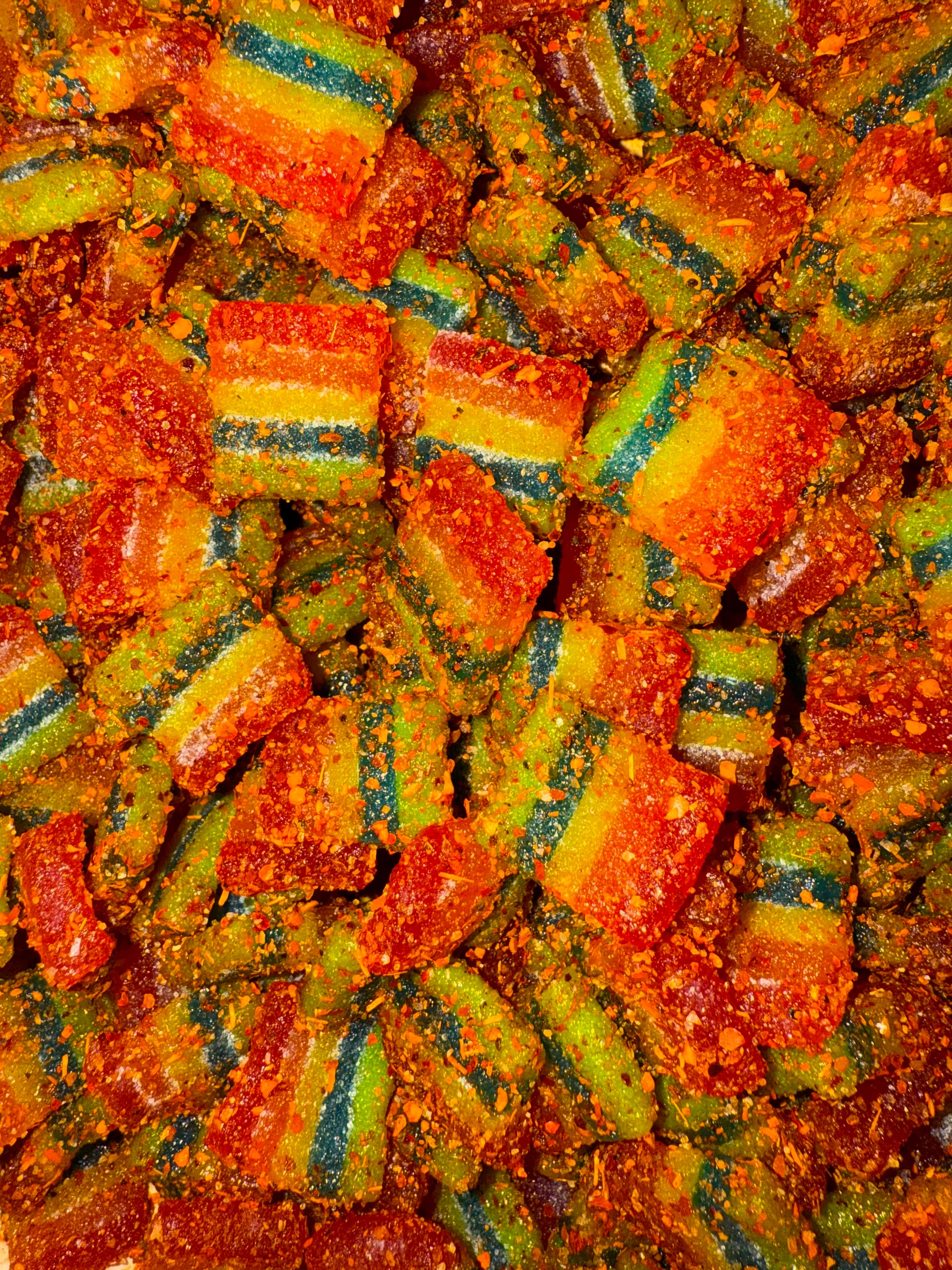 Chamoy and Tajin covered AirHead bites